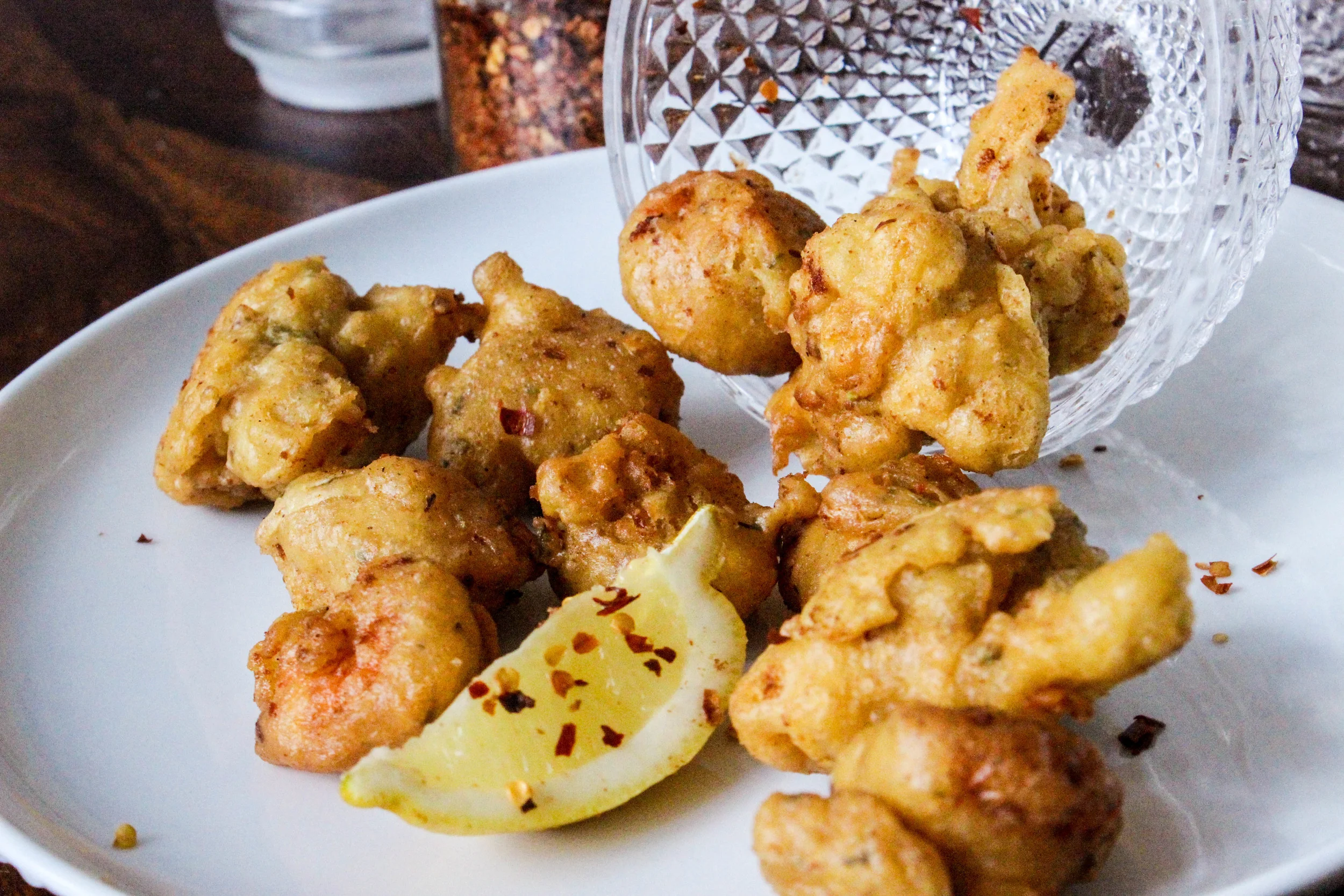 Today's recipe is one that is super simple and yet rarely appears on takeaway menus: prawn koliwada, named after colonies of fishermen. The story goes that it was created in Mumbai by a North Indian immigrant. Think of deep fried prawn tempura, only a little more doughy and a lot more spicy. We owe the thick batter to gram (chickpea) flour. Whenever I've had friends around, prawn koliwada is always the first thing to disappear off the table!